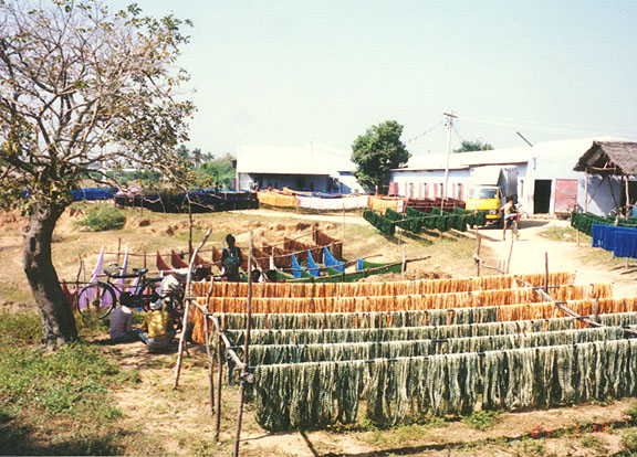 look for the dyed cotton drying